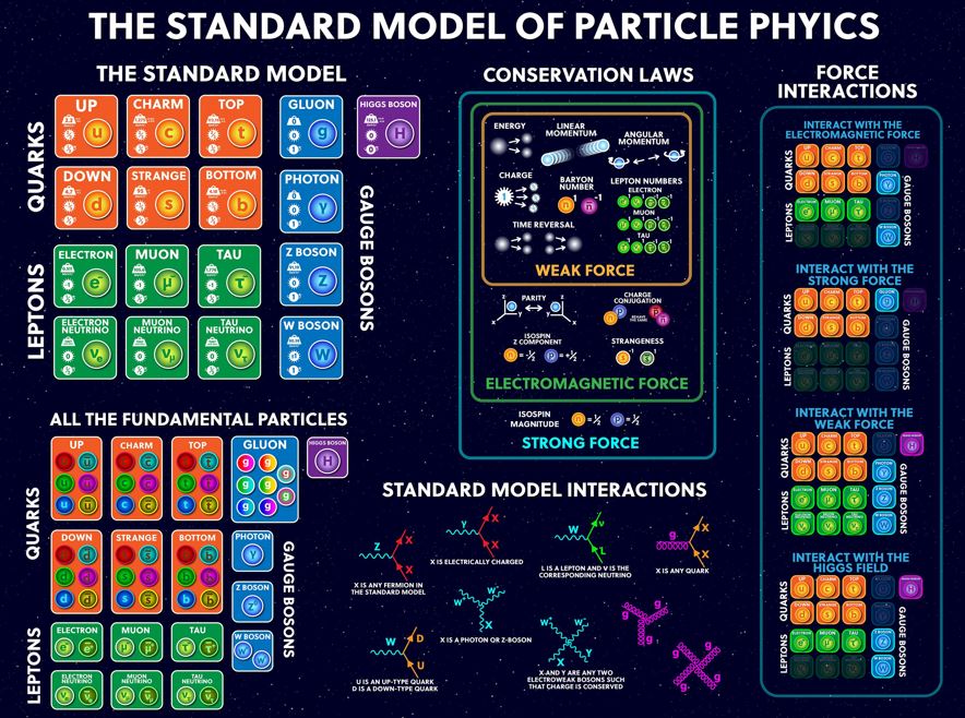 En la actualidad, las partículas elementales se clasifican siguiendo el llamado modelo estándar en dos grandes grupos: bosones y fermiones. Los bosones tienen espín entero (0, 1 o 2) y son las partículas que interactúan con la materia, mientras que los fermiones tienen espín semientero (1/2 o 3/2) y son las partículas constituyentes de la materia. En el modelo estándar se explica cómo las interacciones fundamentales en forma de partículas (bosones) interactúan con las partículas de materia (fermiones). Así, el electromagnetismo tiene su partícula llamada fotón, la interacción nuclear fuerte tiene al gluón, la interacción nuclear débil a los bosones W y Z y la gravedad a una partícula hipotética llamada gravitón. Entre los fermiones hay más variedad; se encuentran dos tipos: los leptones y los quarks. En conjunto, el modelo estándar contiene 24 partículas fundamentales que constituyen la materia (12 pares de partículas y sus correspondientes anti-partículas) junto con tres familias de bosones de gauge responsables de transportar las interacciones.